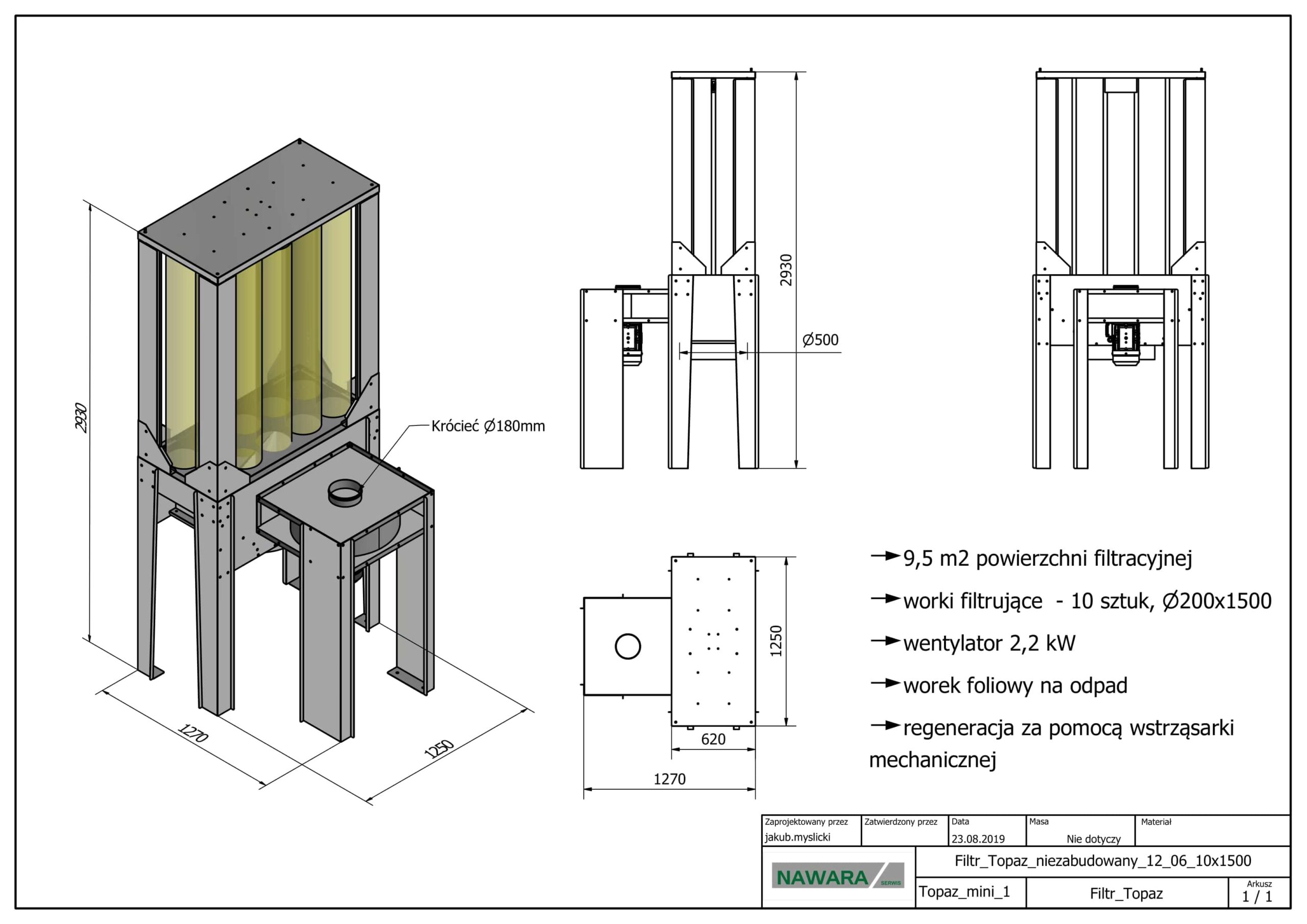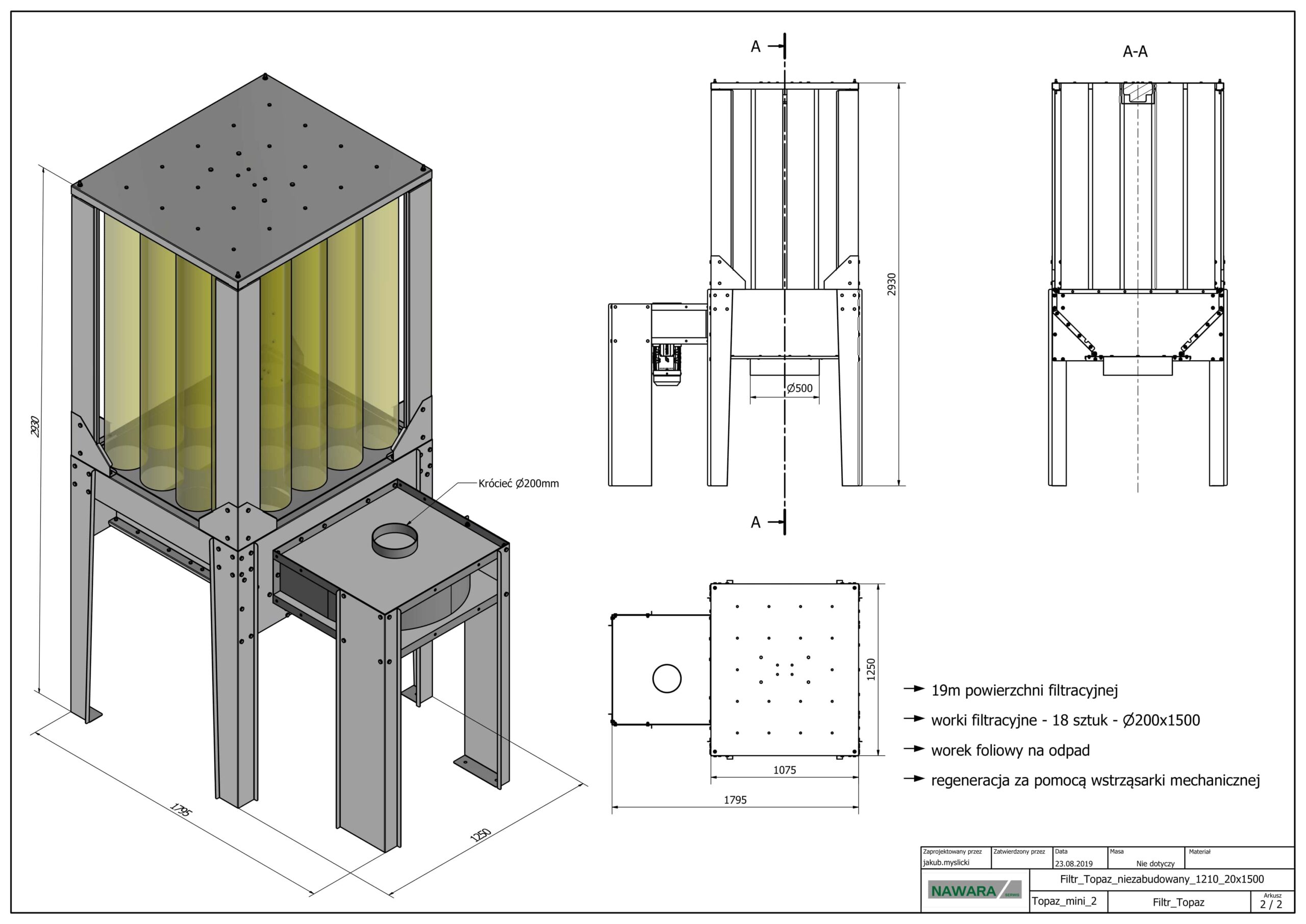 | Model | capacity [m3/h]l | nozzle [fi] | regeneration | filtration area [m2] | fan power [kW] |