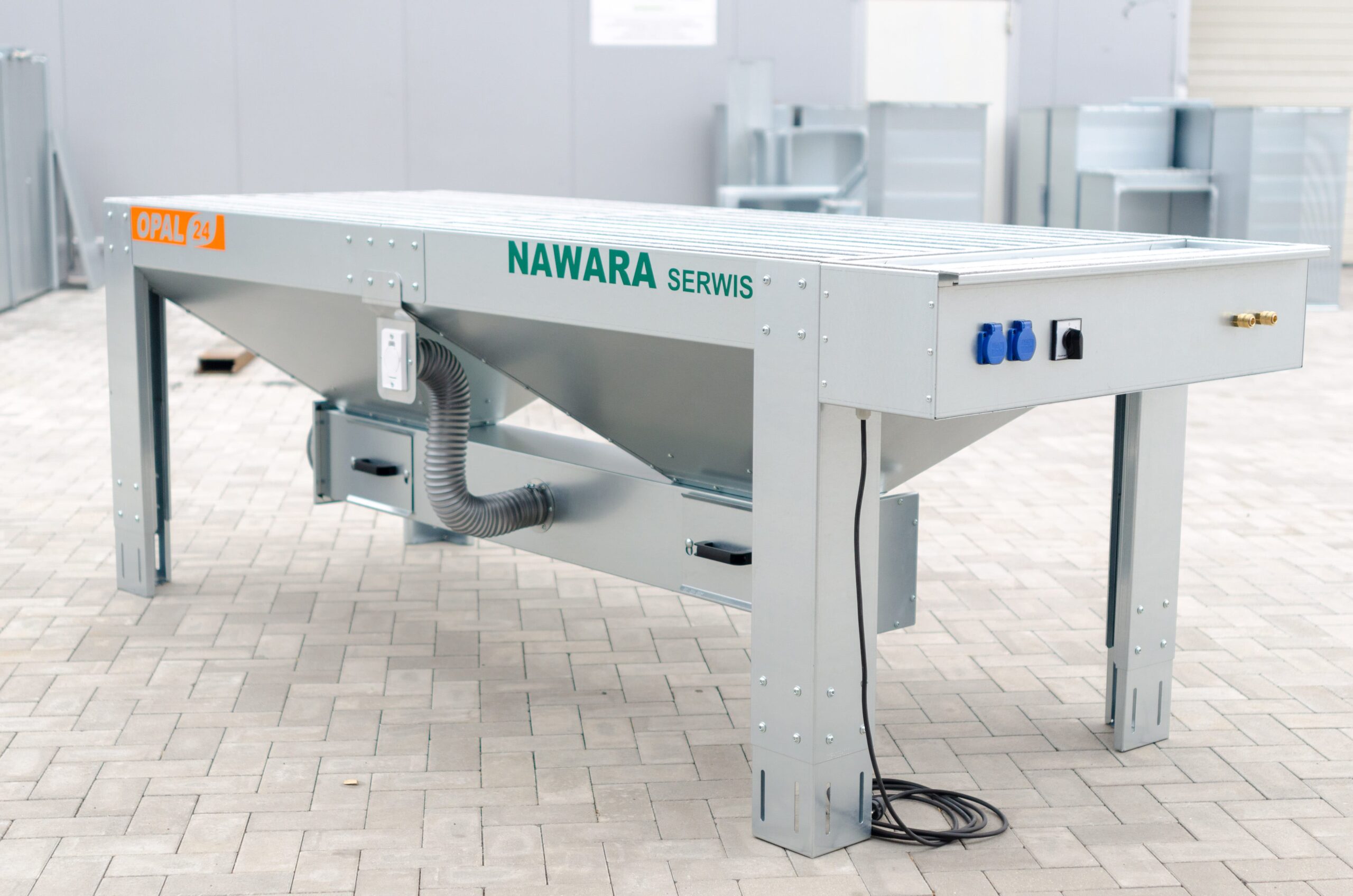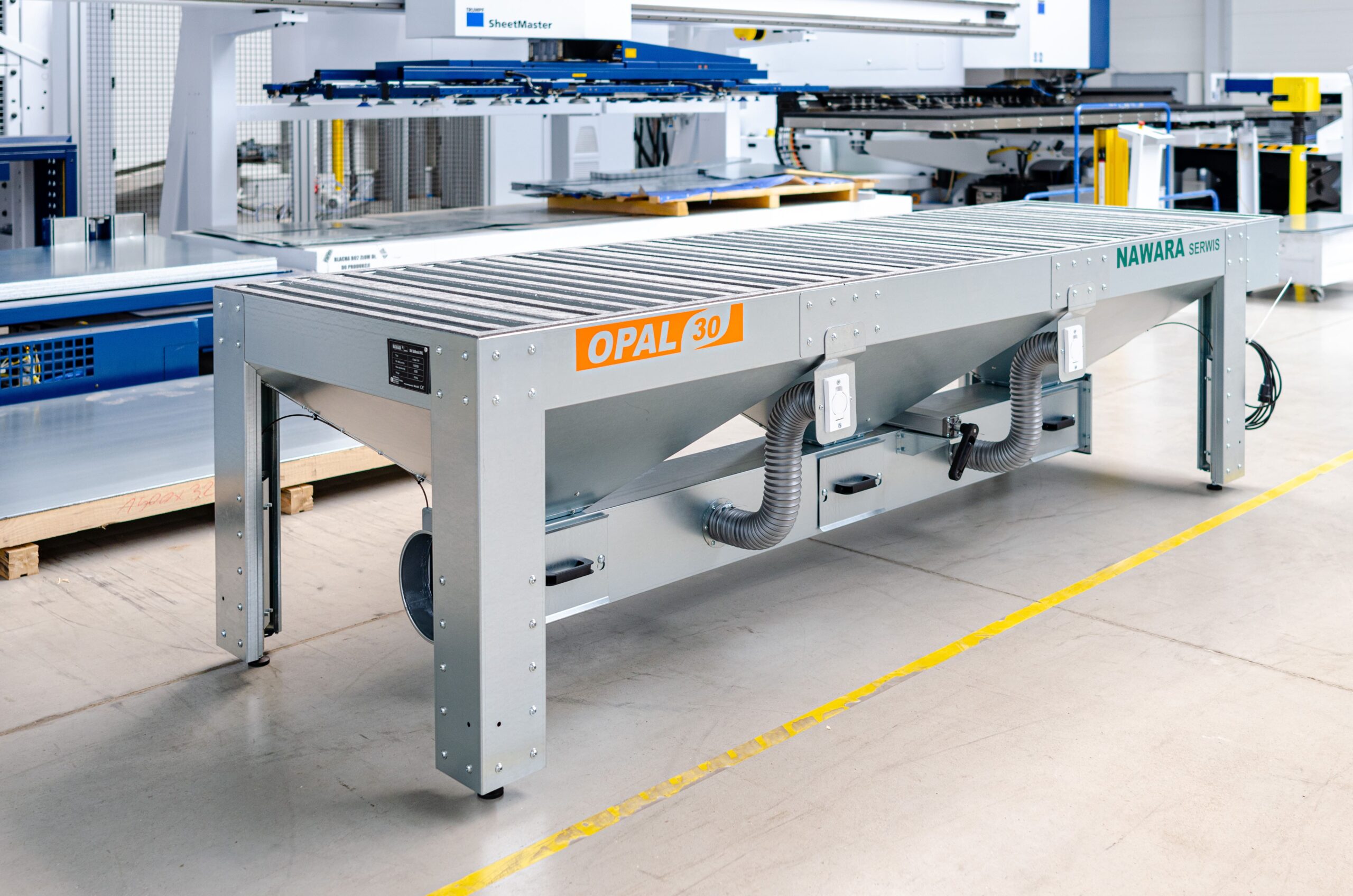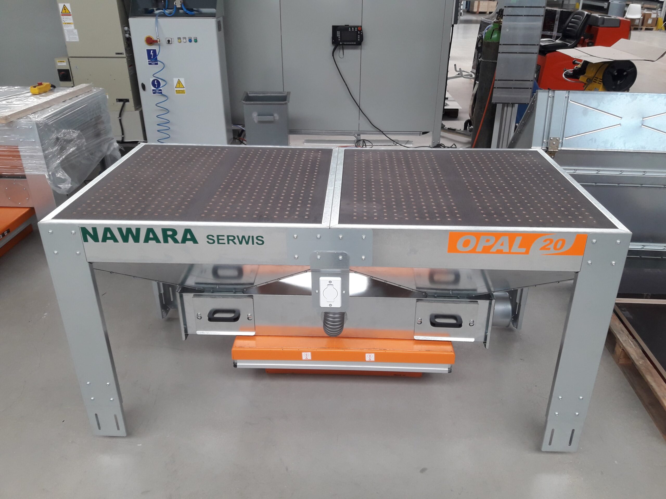 OPAL tables are modern workstations designed with ergonomics, effective dust extraction, and user comfort in mind. Adjustable table height and trapezoidal work surface covered with felt ensure comfortable operation and precise surface preparation.