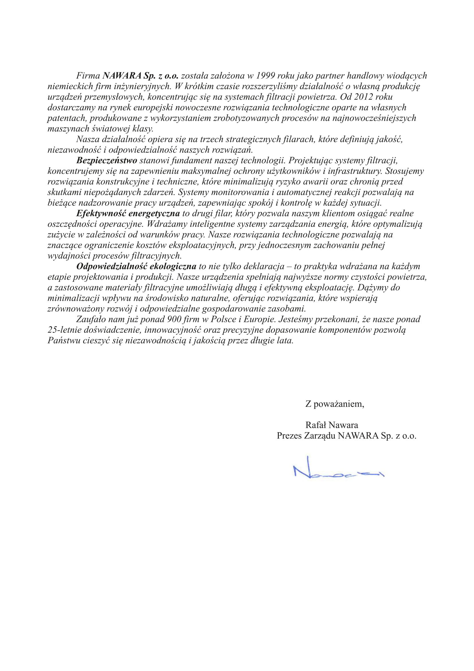 Nawara Ltd. is a specialist and Polish manufacturer in the field of comprehensive filtration and dedusting systems for the wood, metal, and construction industries, as well as oil mist extraction systems for machining and metalworking processes, and waste management and recycling solutions.